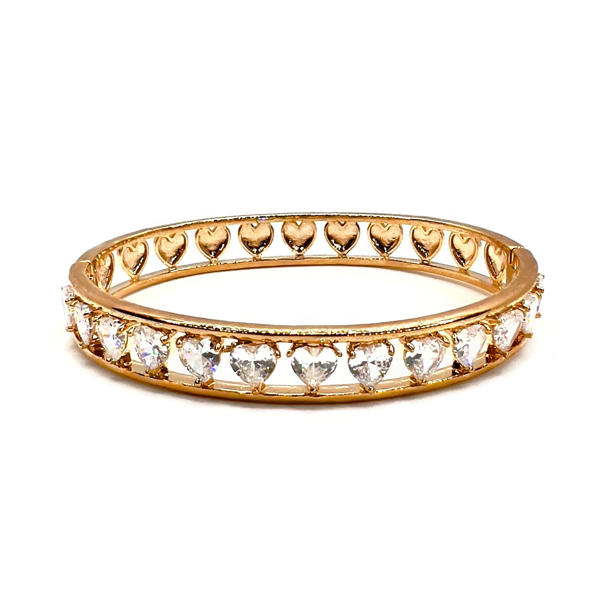 Bracciale rigido c/apertura laterale con cuori a pietra