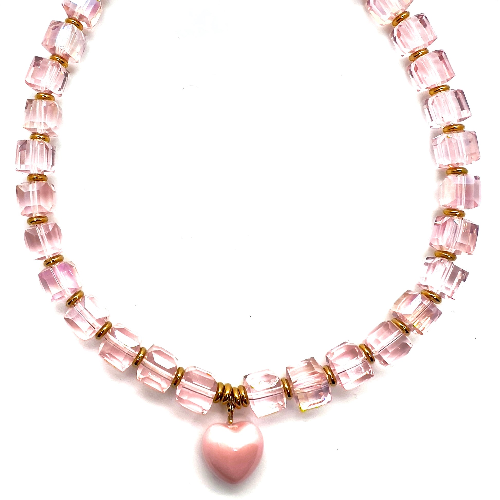 Collana con pietre,anellini oro e cuore smaltato